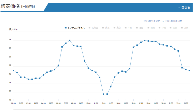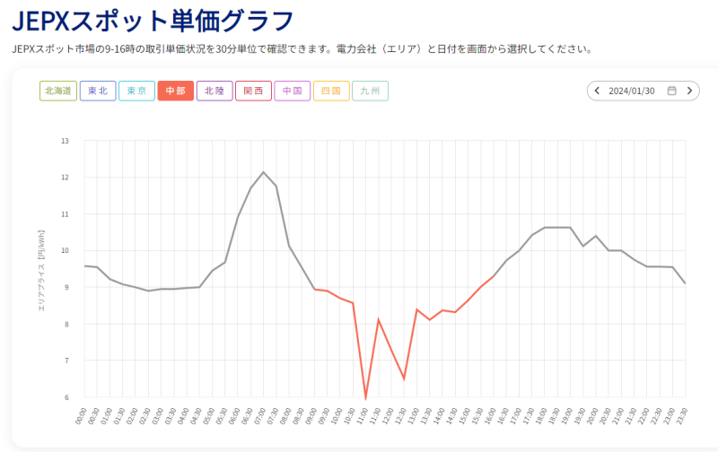 8時から16時の単価は6円から9.5円でした。