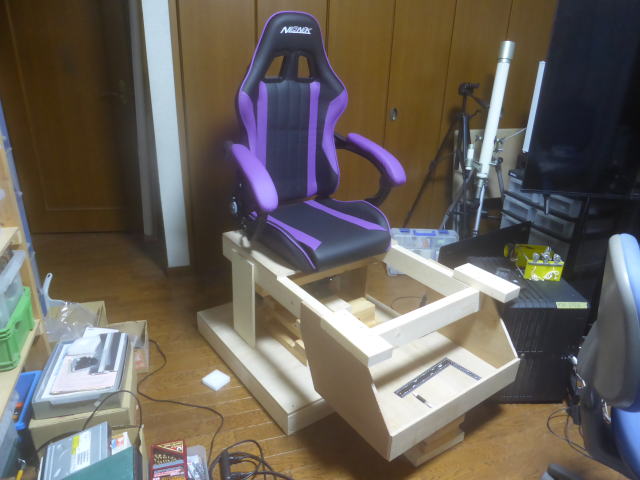 続いて背もたれも取り付けました。 座る場所ができてモーションシムらしくなってきました。 |