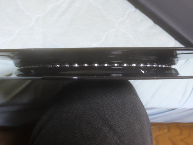 横からみたら金属ボールがたくさん並んでいました。 これは大きなボールベアリングです。 モーションシムの土台の前方中央の下(底)にこれを取り付けます。 後方の左右には車輪を各1個取り付けます。 台の垂直荷重は100kgを超えると思います。 この荷重をこのベアリングと2個の車輪の3箇所に分散して支えます。 今制作しているモーションシムにヨーモーションは含んでいません。 将来ヨーモーションを追加する事があればこれを利用しようと思います。 |