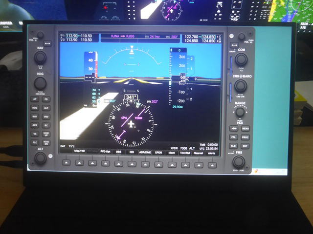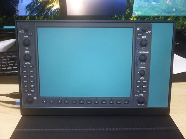 ベゼル内にPFDの画像を表示しました。 モニターがタッチモニターなのでベゼル上のボタンにタッチして操作できます。 |